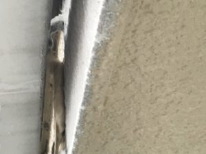 破風塗装は雨樋があり見えない所も筆を入れてしっかりと塗っていきます。