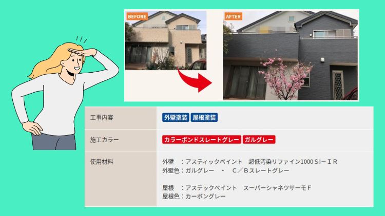 こうしたミスを減らすためには、色見本でチェックするだけでなく、カラーシミュレーションや施工実績をみせてもらうようにしましょう。