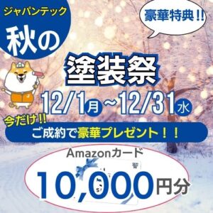 🎁 年末のお買い物にも活用! WEBからのご契約(100万円以上)でAmazonギフト券1万円分をプレゼント!年末年始のご馳走や、冬支度グッズの購入などにご活用いただけます。
