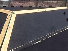 | 屋根重ね葺き アスファルトルーフィング(防水紙)を張り軒先から屋根材を張り途中、新しい雪止めを取り付けます。