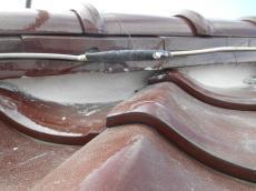 | 棟瓦 漆喰補修 旧漆喰の撤去 | 棟瓦 漆喰補修 新しい漆喰を充填 | 棟瓦 漆喰補修終了 |