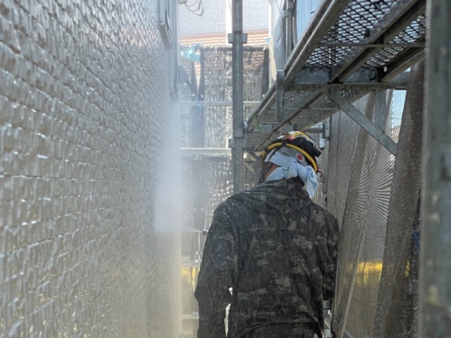 劣化した塗膜や汚れを洗浄します。高圧洗浄