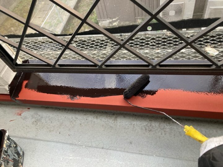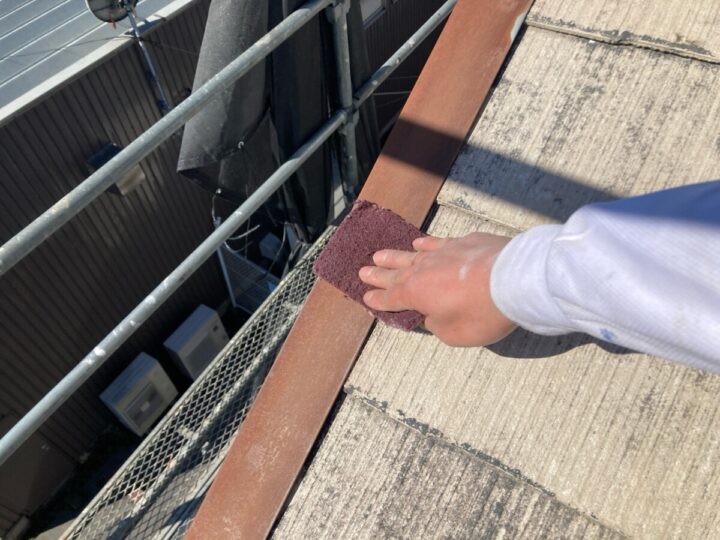 鉄部ケレン作業 ケラバ板金屋根塗装