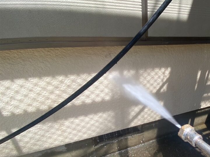 劣化した塗膜や汚れを洗浄します。高圧洗浄