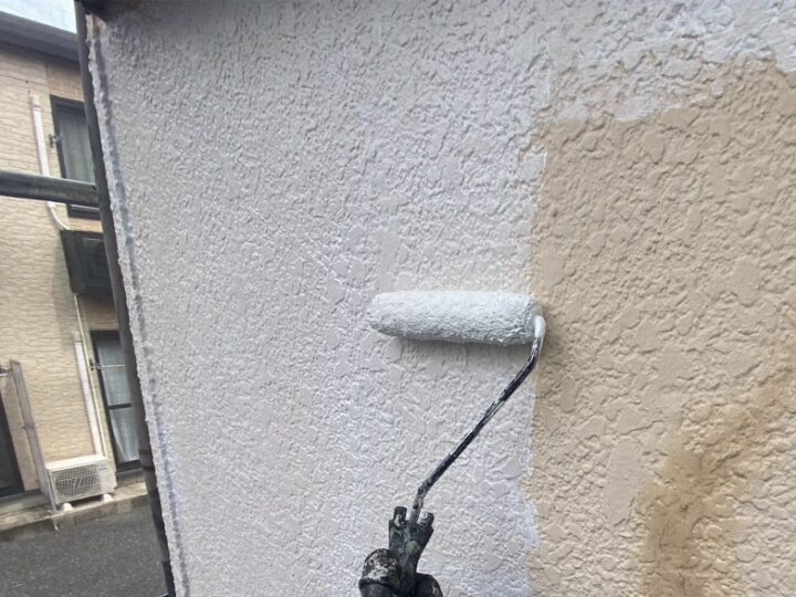 モルタル壁 上塗り2回目 施工後外壁塗装