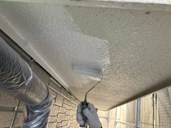 バルコニートップコート塗装(グレー)プライマー塗布 施工後付帯塗装