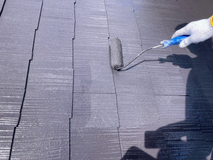 スレート瓦 上塗り2回目屋根塗装