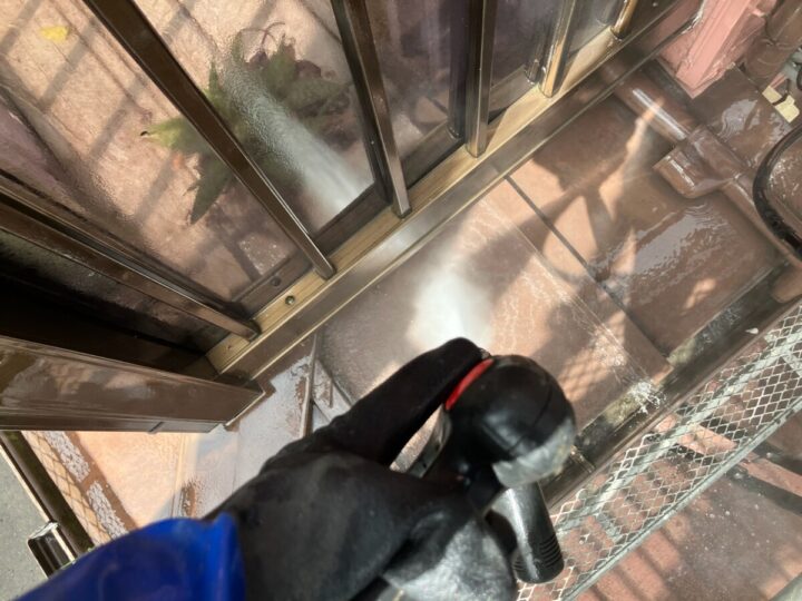 外壁と一緒に付帯部の埃や汚れを洗浄します。高圧洗浄