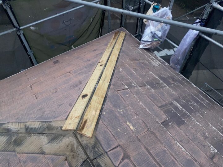 既存の棟板金と下地材を撤去します。棟板金交換工事