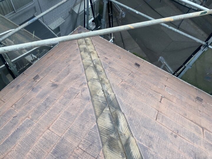 下屋根棟板金他鉄部 釘頭・継手シーリング処理屋根塗装