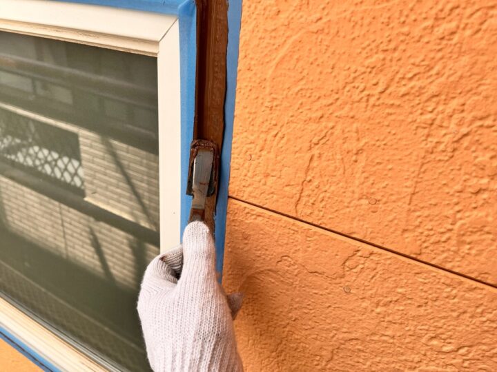 ケレン作業、下塗り(錆止め)後 上塗り1回目付帯塗装
