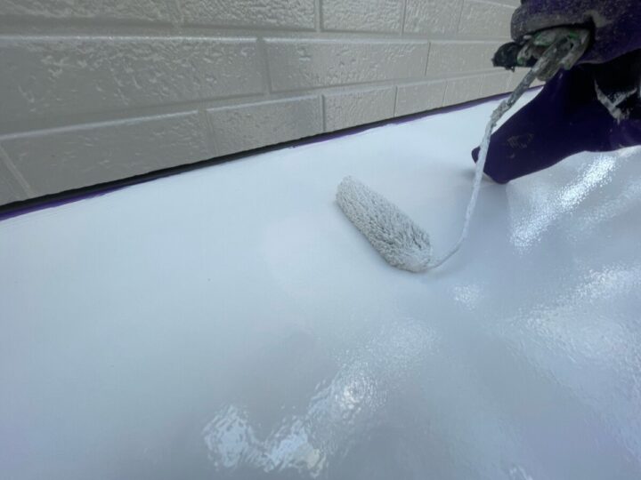 板金の継手にシーリングを施して仕上げます。屋根カバー工事