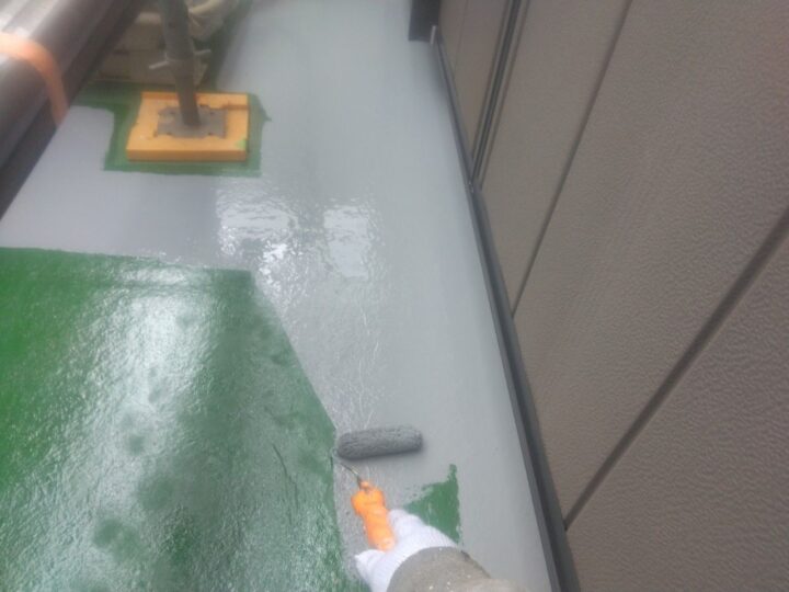 スレート瓦 上塗り1回目 施工後屋根塗装