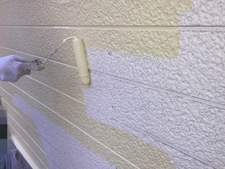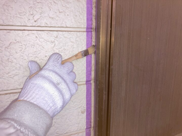 軒天周り プライマー塗布後、シーリング材の充填シーリング工事