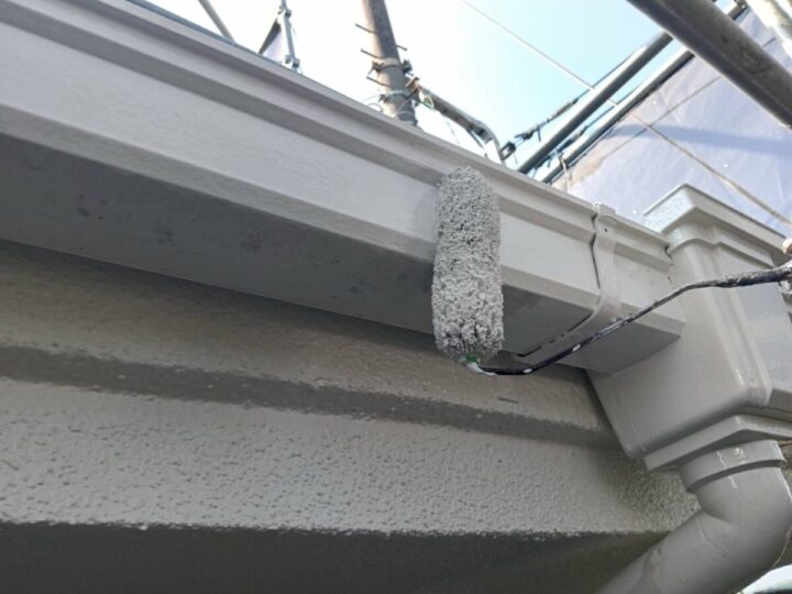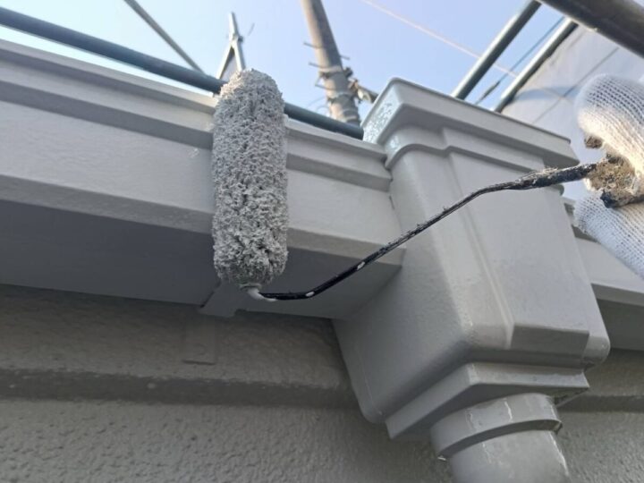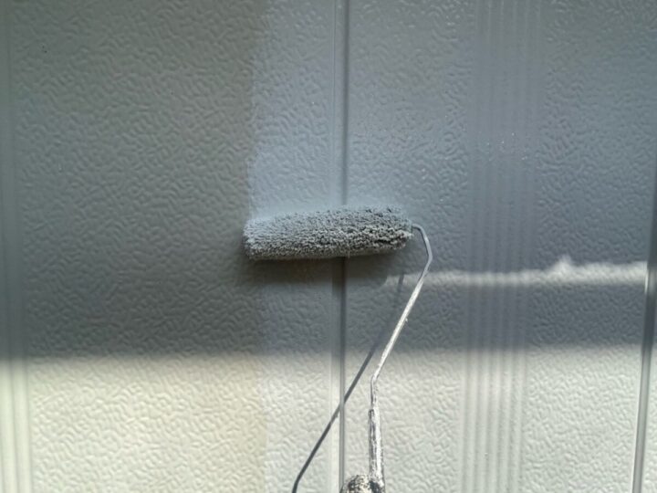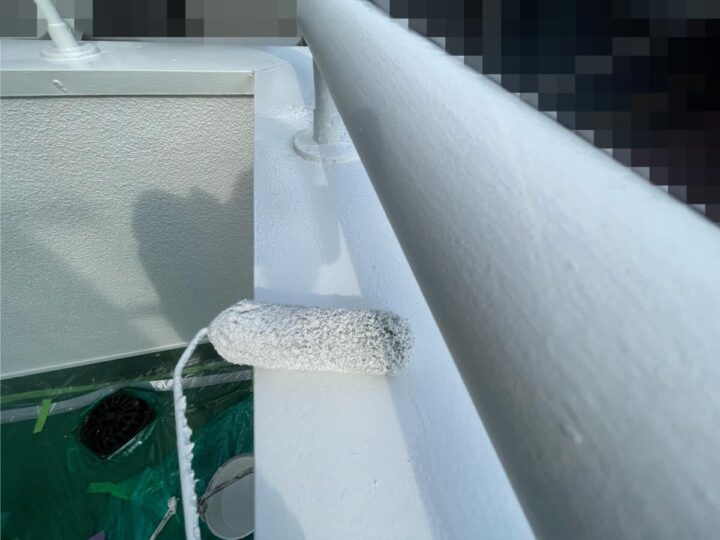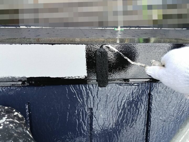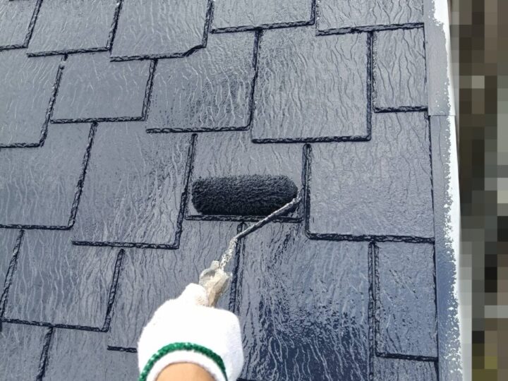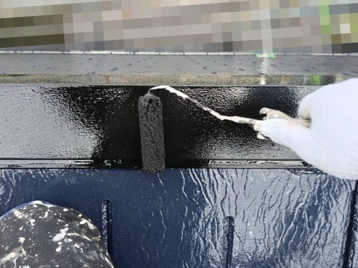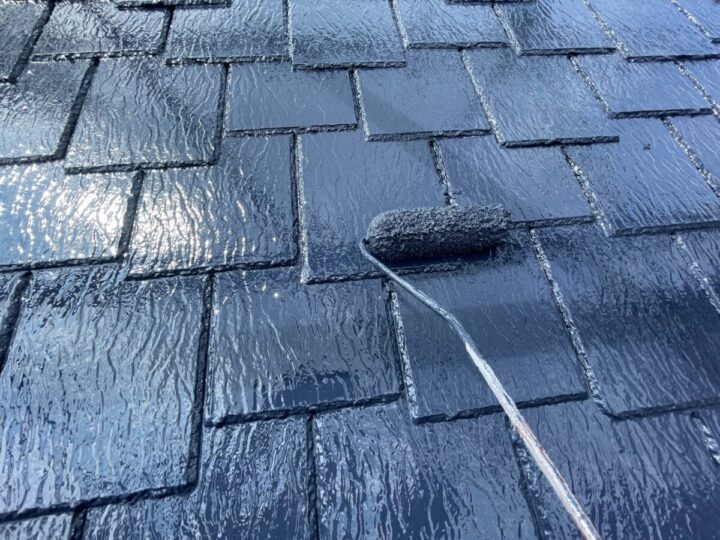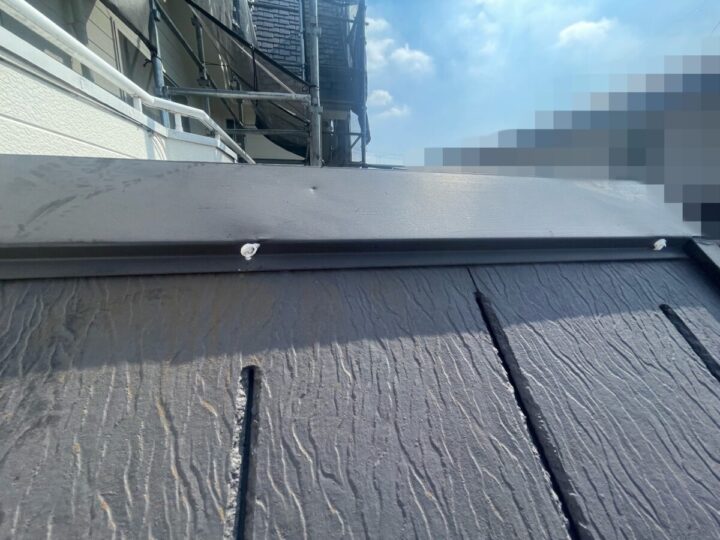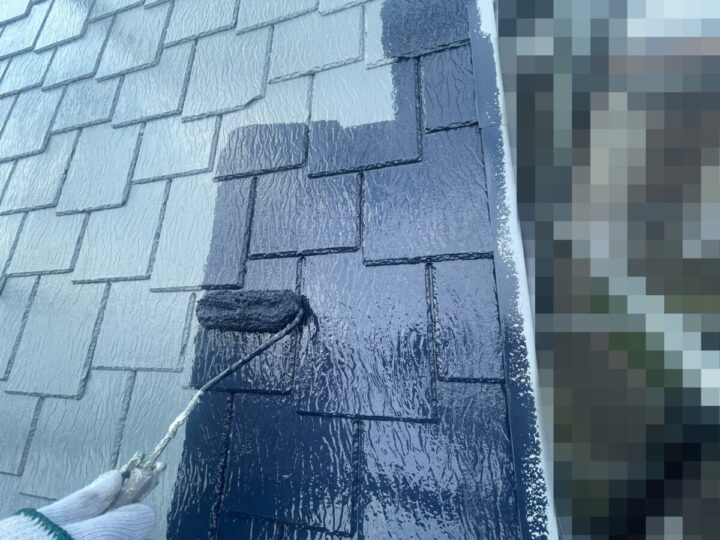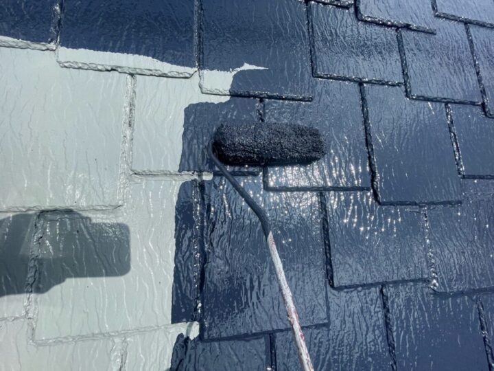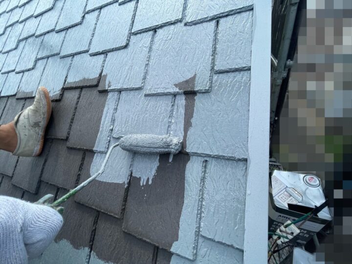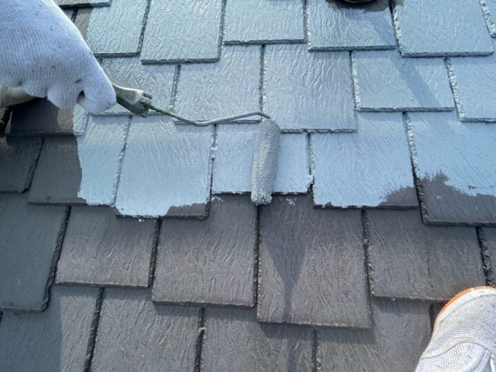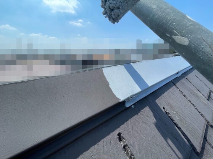 スレート瓦 棟板金他鉄部 上塗り1回目屋根塗装