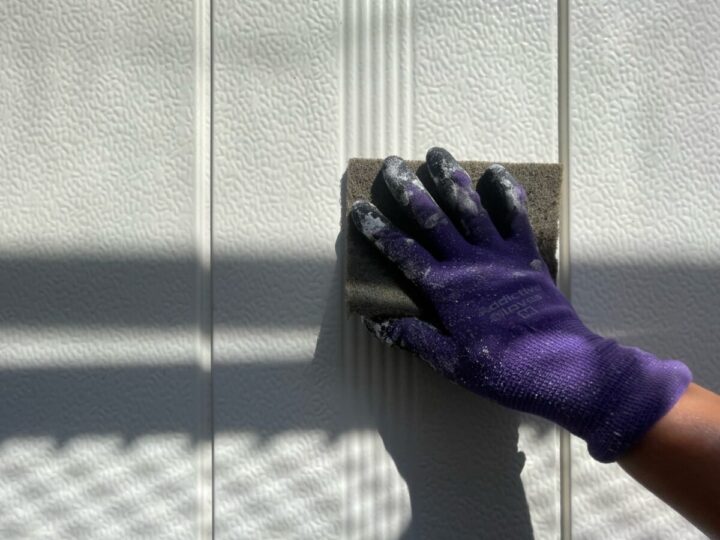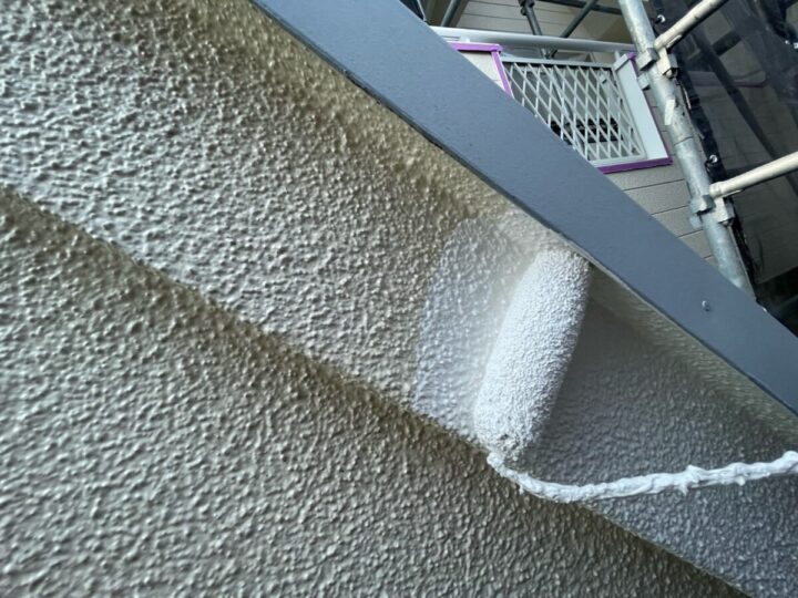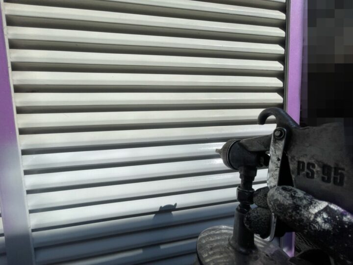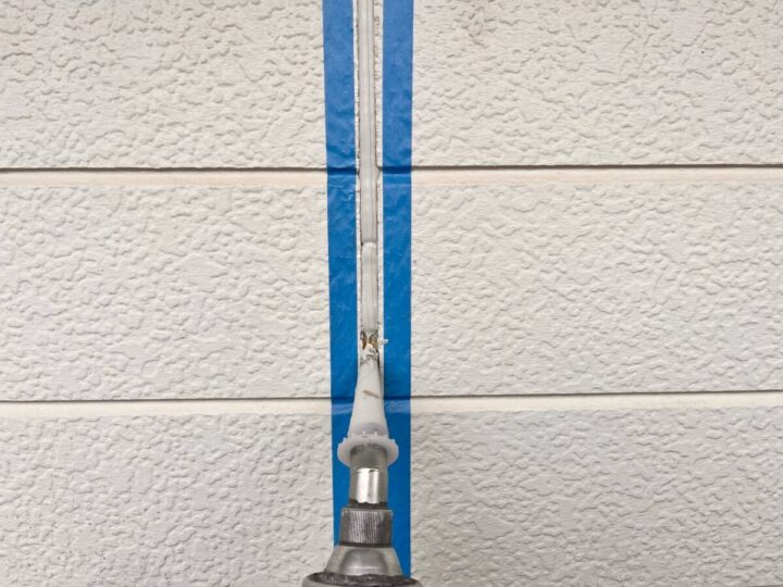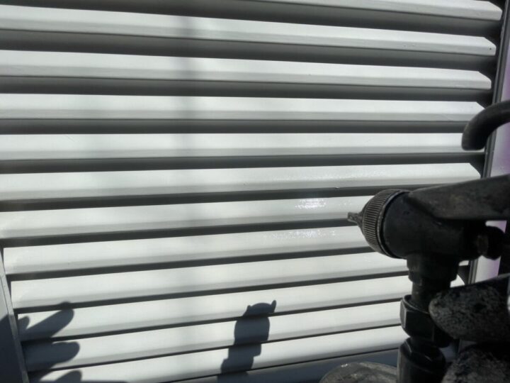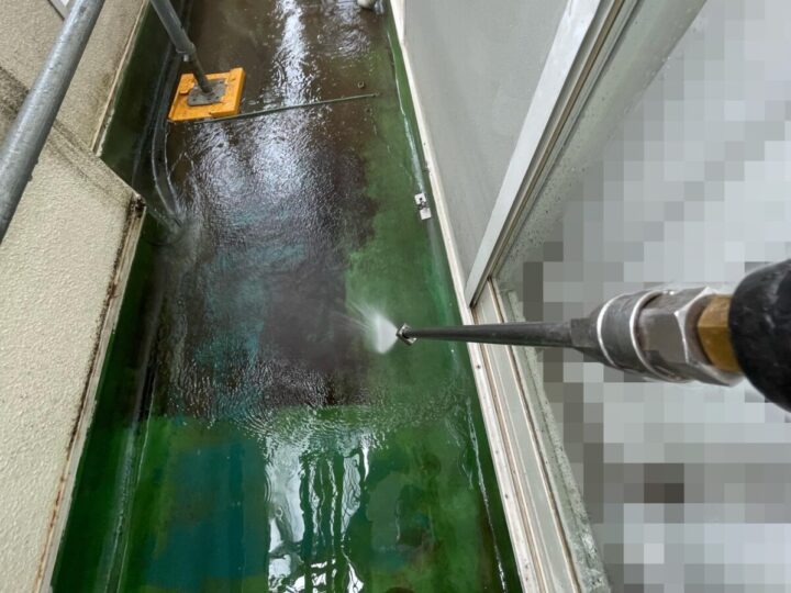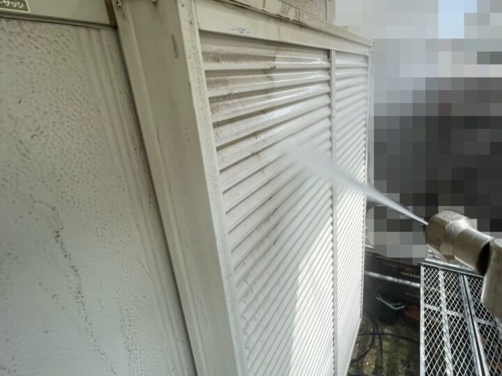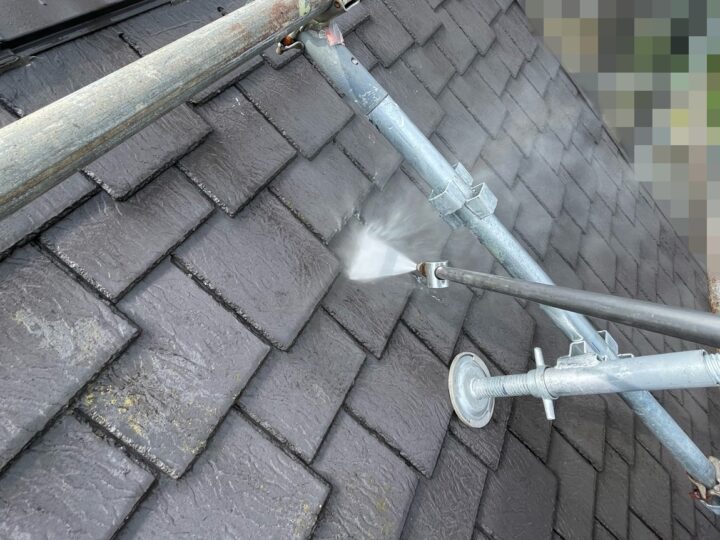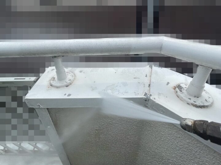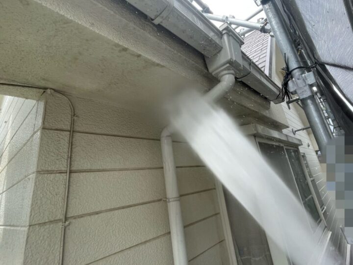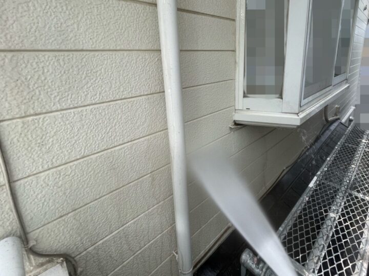 埃や汚れを高圧の水で洗浄して塗料の密着を高めます。高圧洗浄