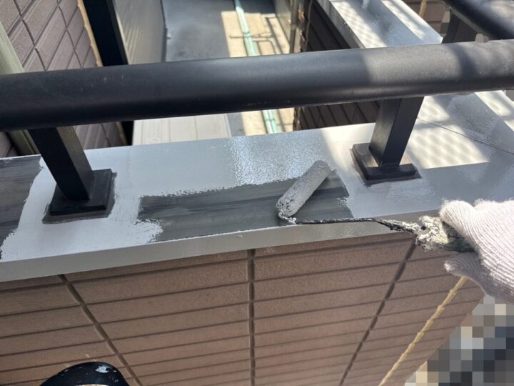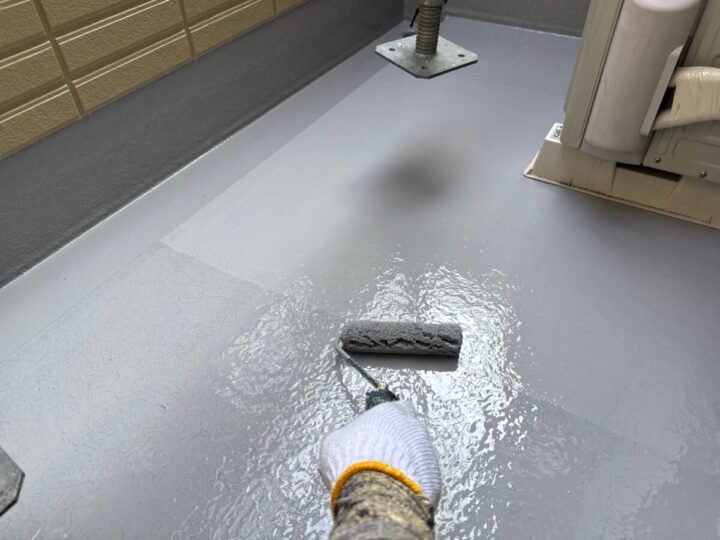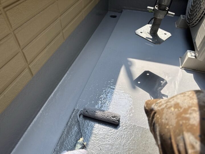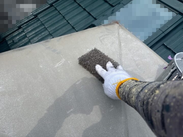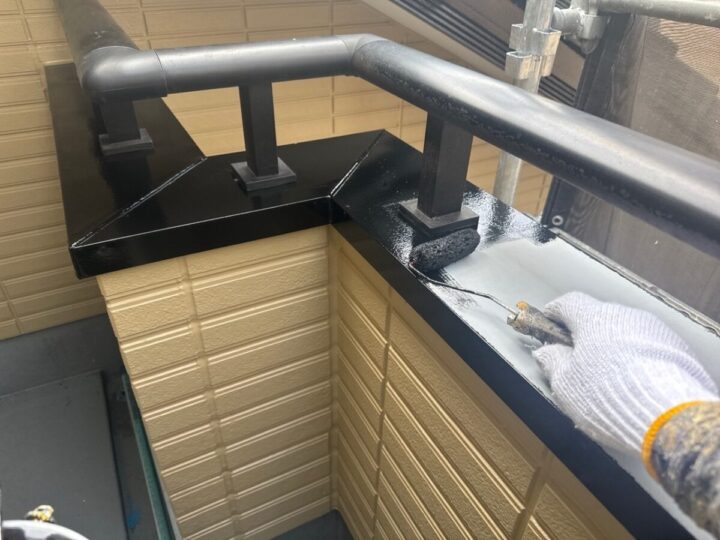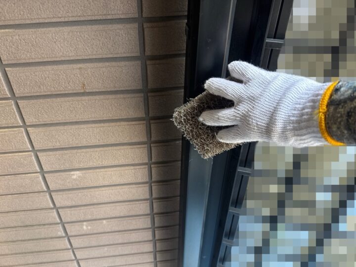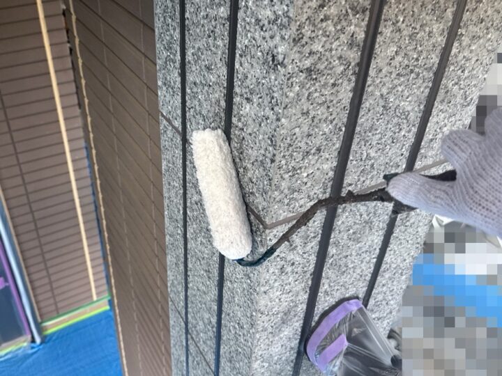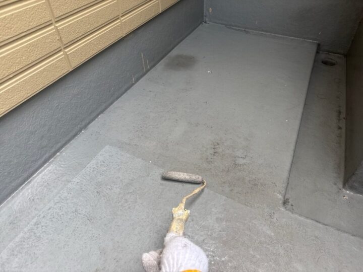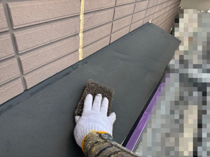 埃や汚れを高圧の水で洗浄して塗料の密着を高めます。高圧洗浄