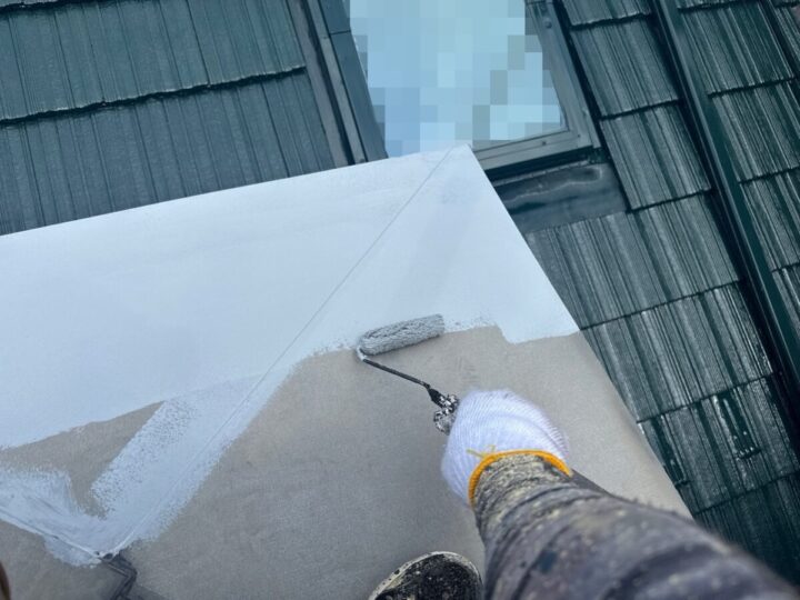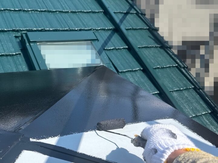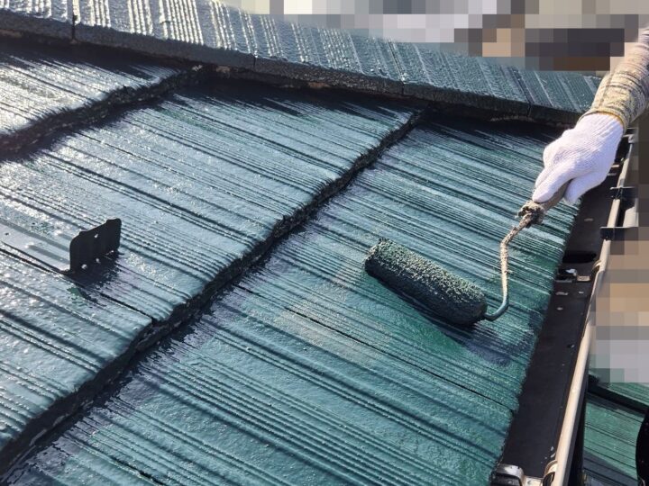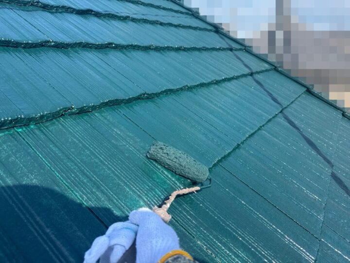使用材料 | 屋根 :菊水化学工業 キクスイSPパワーサーモSi 屋根色:ディープグリーン 外壁 :アステックペイント シリコンREVO1000-IR 外壁色:クエリー(メイン) スレートグレー(アクセント) |