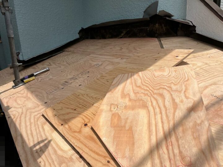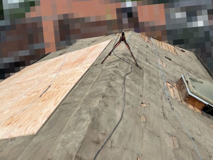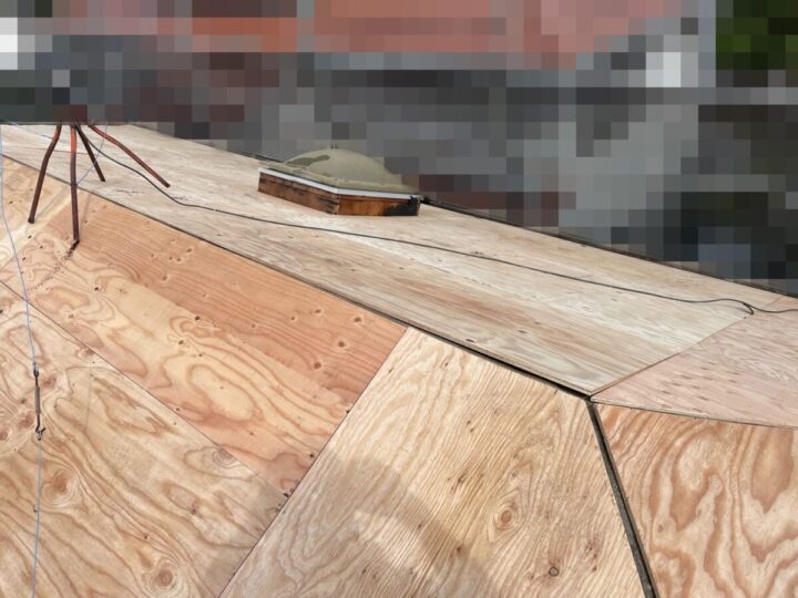 下地補強の為、コンパネを張ります。屋根葺き替え工事