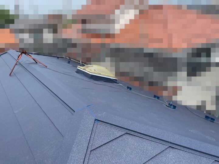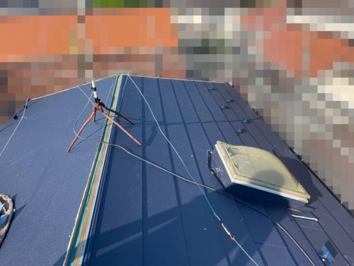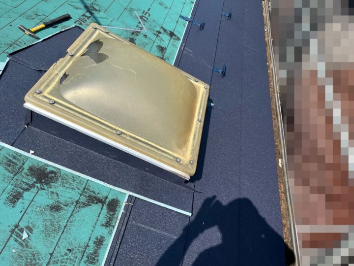 トップライトは雨仕舞のため周囲を役物で仕上げます。屋根葺き替え工事
