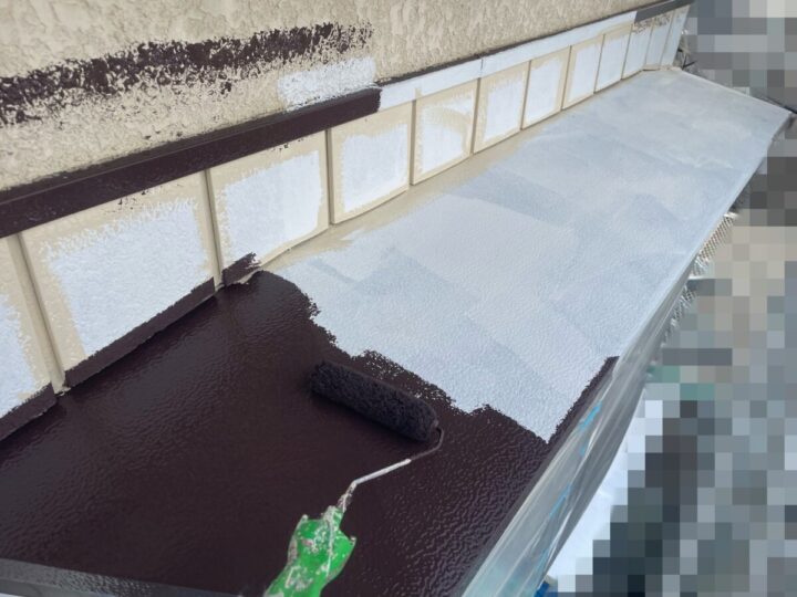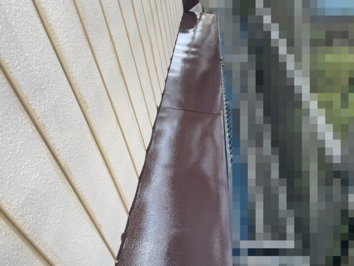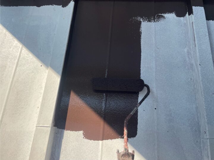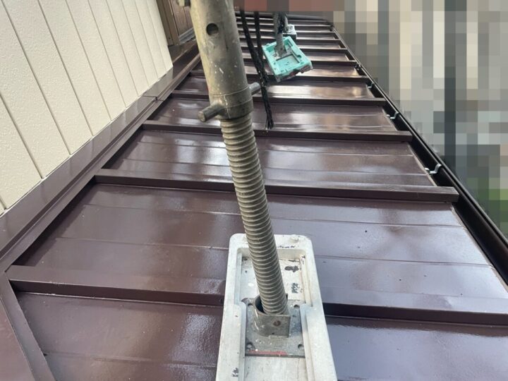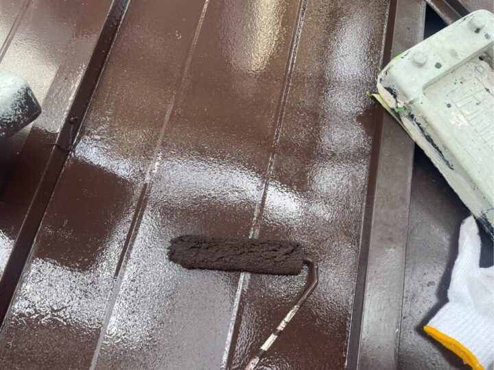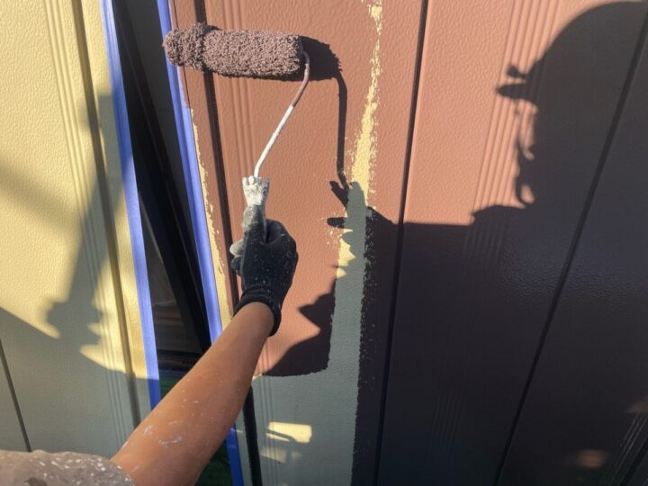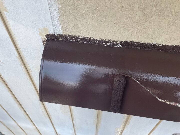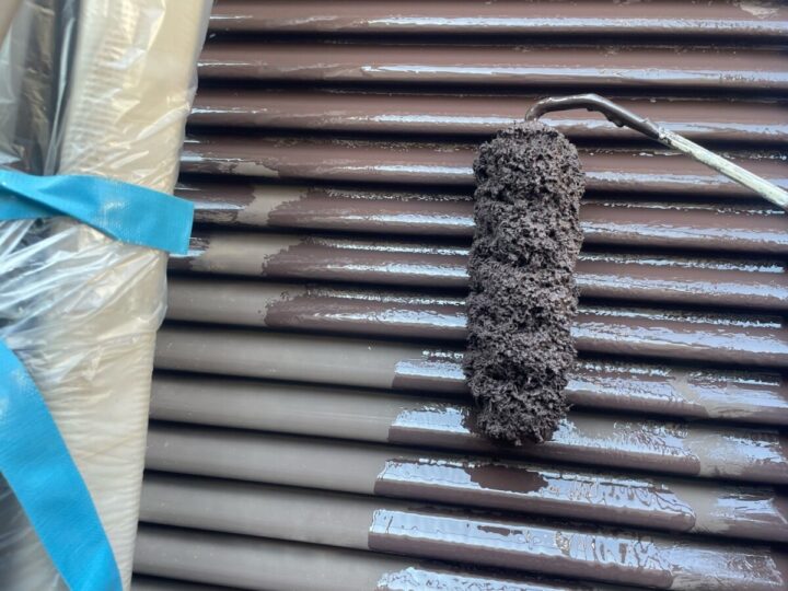 使用材料 | 下屋根:菊水化学工業 キクスイSPパワーシリコン 屋根色:ヤララブラウン 外壁 :アステックペイント シリコンフレックスJY(金属外壁) スーパーラジカルシリコンGH(モルタル外壁) 外壁色:サンダルウッド |