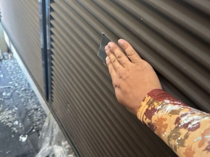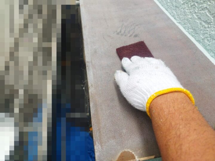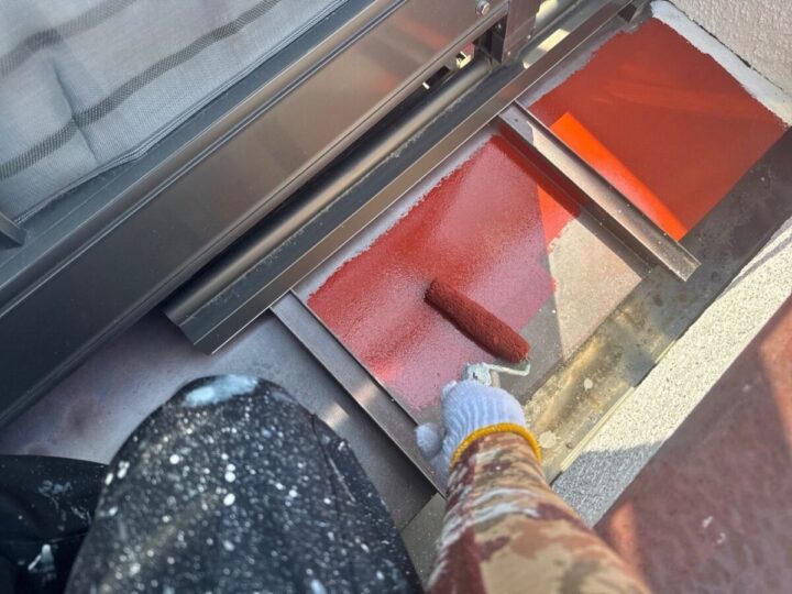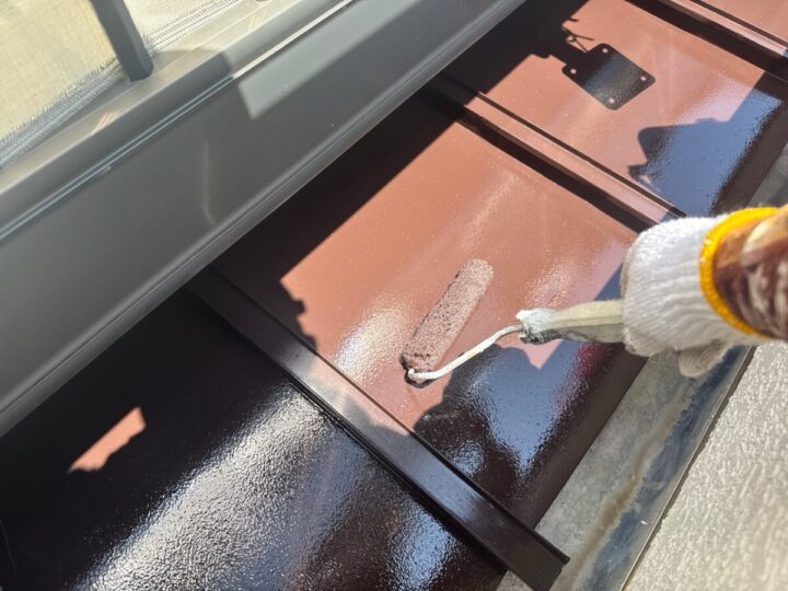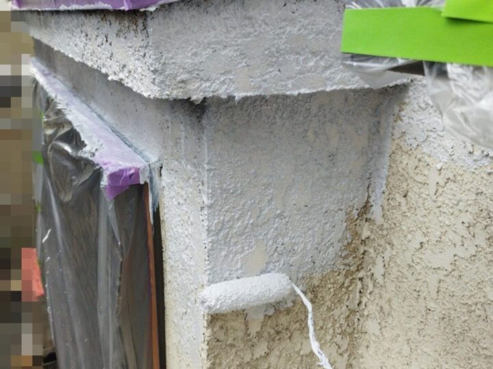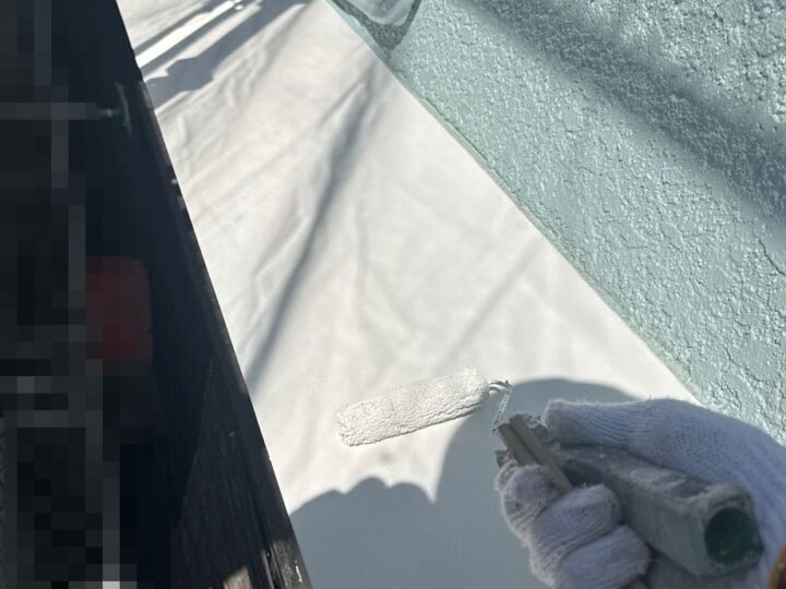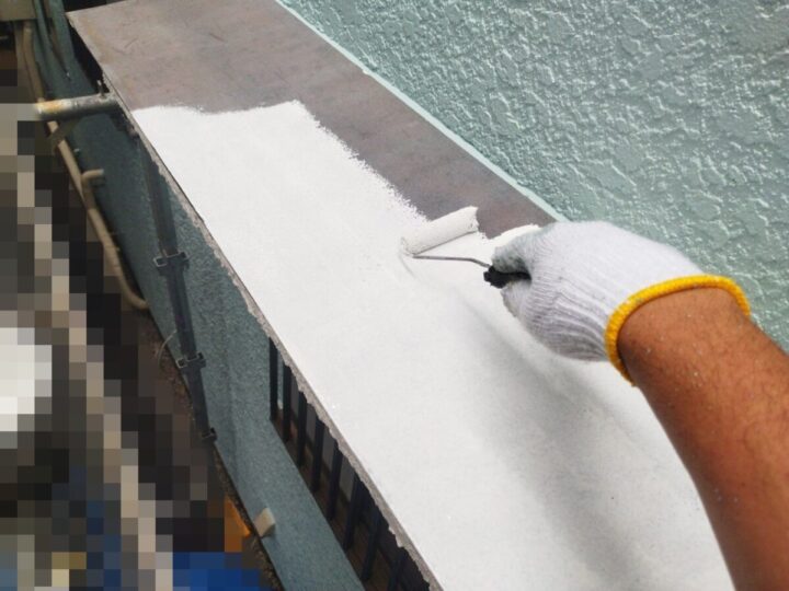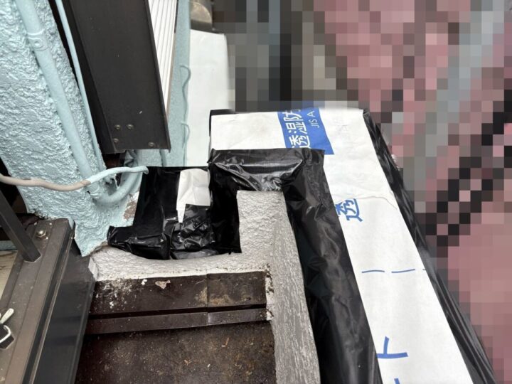 笠木の下地材設置後、防水紙を張ります。笠木工事