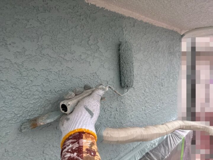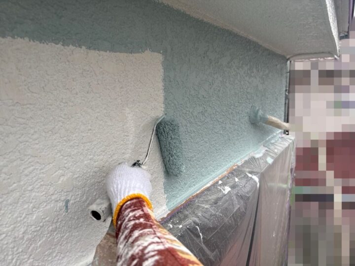 使用材料 | 外壁 :アステックペイント 超低汚染リファインMF-IR 外壁色:パストグリーン(メイン) シルキーホワイト(アクセント) |