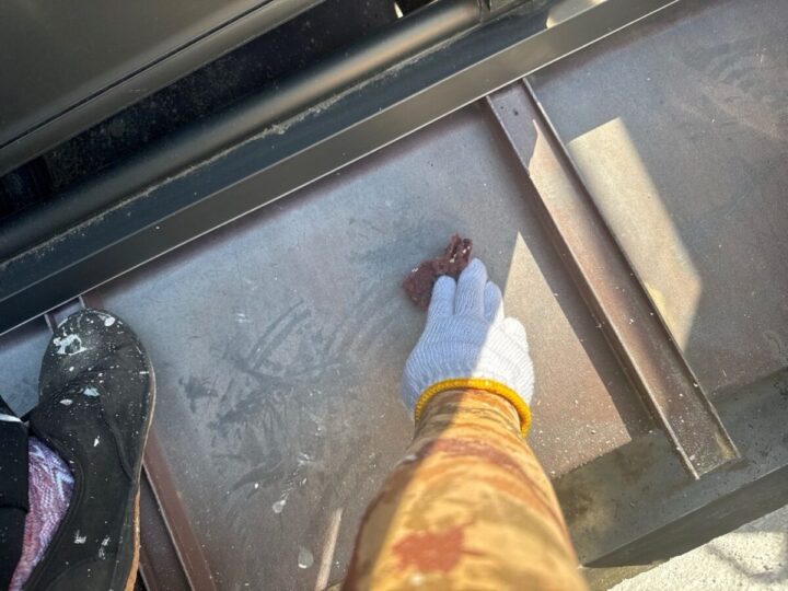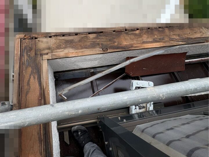 既存の雨樋を撤去し、新しい雨樋設置のため