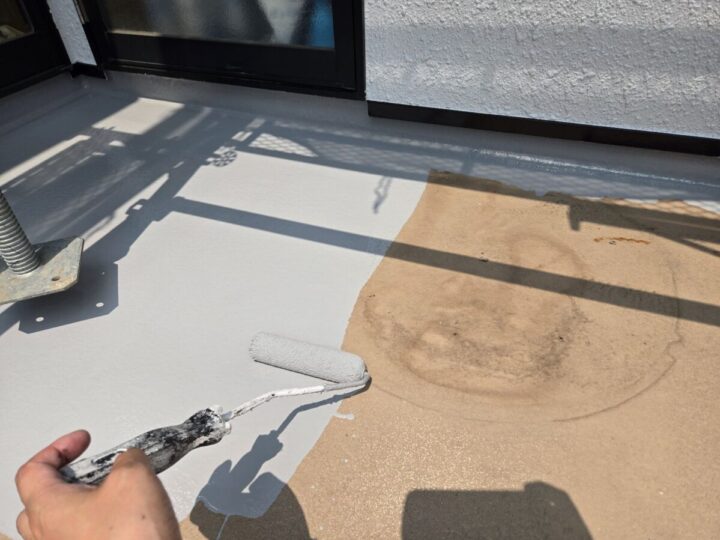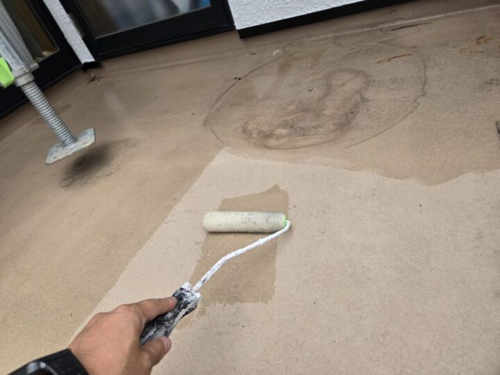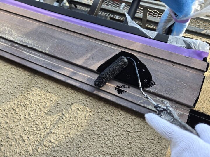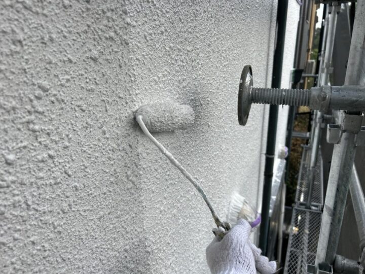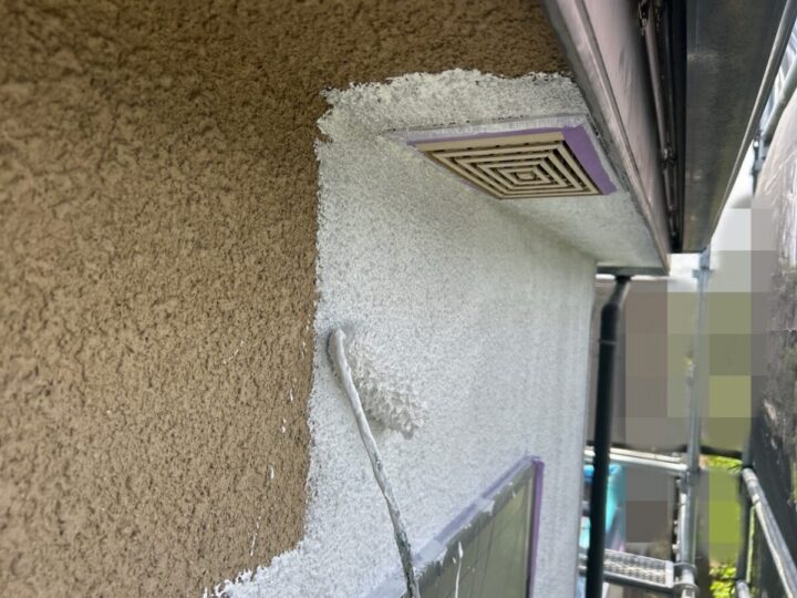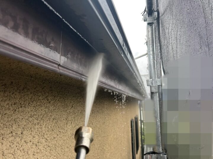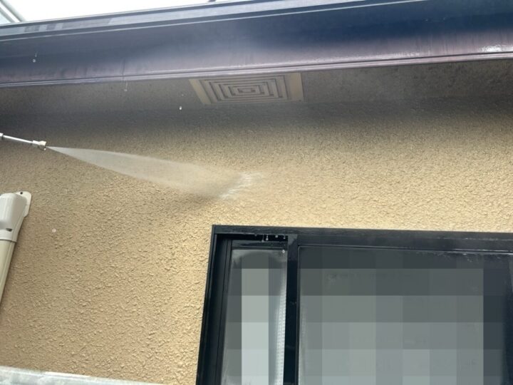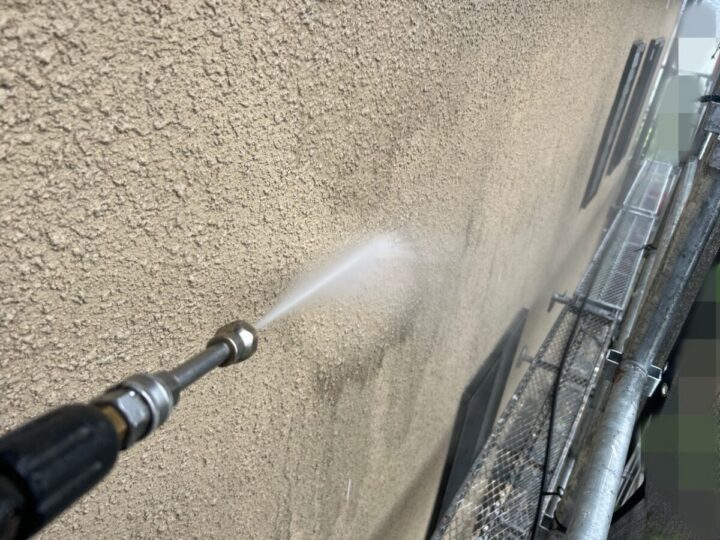埃や汚れを高圧の水で洗浄して塗料の密着を高めます。高圧洗浄