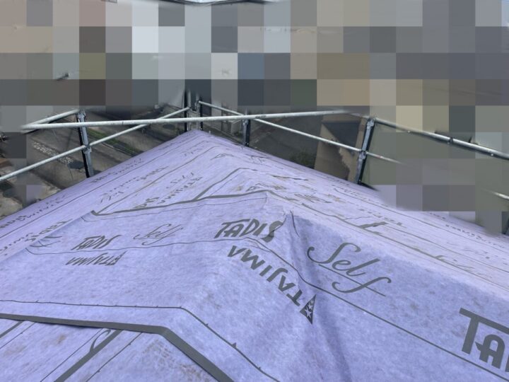軒先から順にアスファルトルーフィング(防水紙)を棟まで張